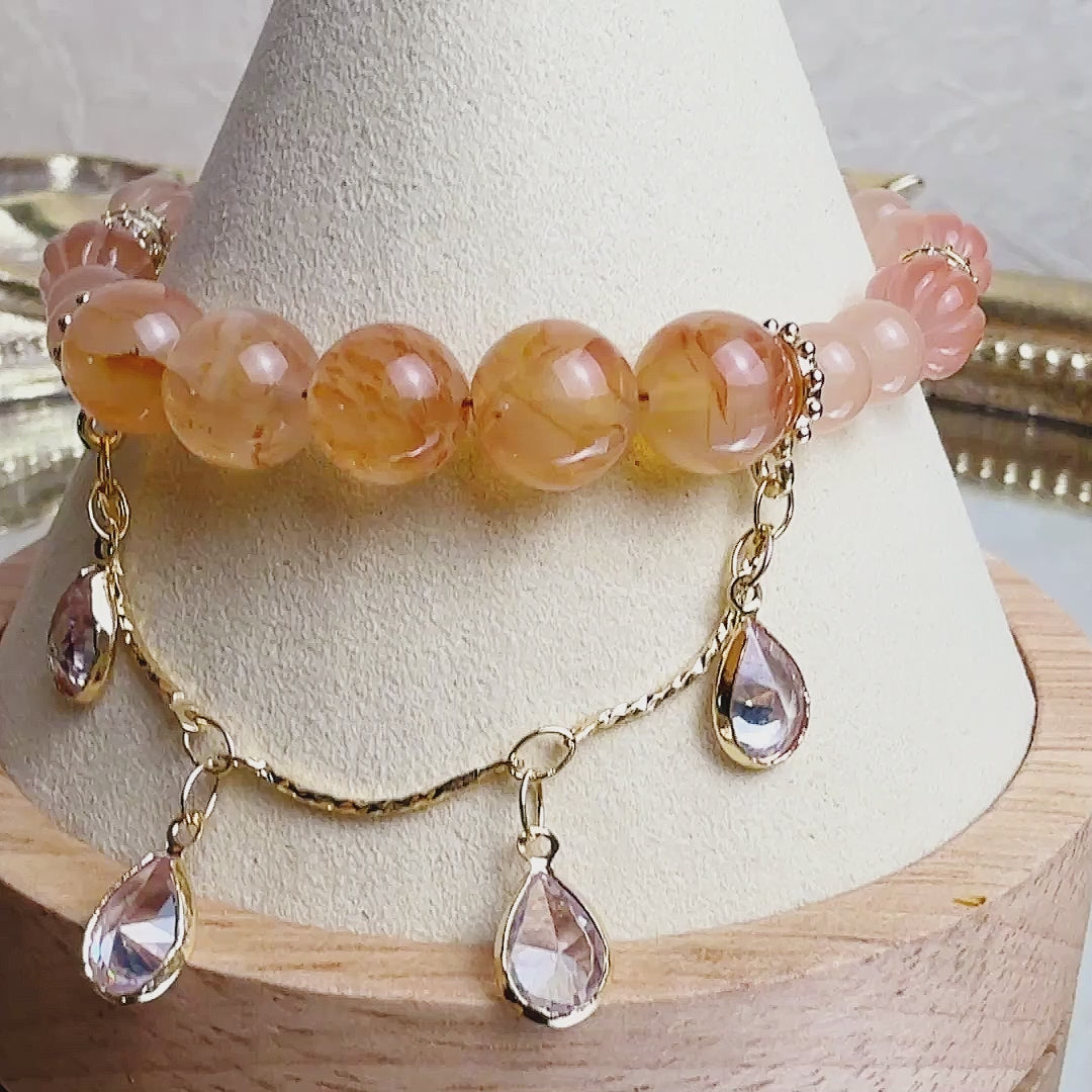 Orange hematoid quartz, grapefruit quartz, agate pumpkin bead