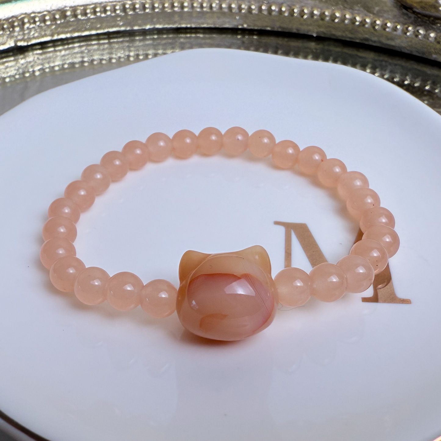 Kitty head + Grapefuit Agate Bracelet